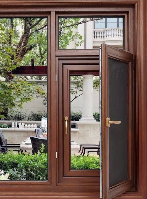 鋁包木窗是在實(shí)木的基礎(chǔ)上,用鋁合金型材與木材通過機(jī)械方法連接而成的型材,通過特殊角連接組成的新型窗。這種門窗具有雙重裝飾效果,從室內(nèi)看是溫馨高雅的木窗,從室外看卻又是高貴豪華的鋁合金窗。這樣既能滿足建筑物內(nèi)外側(cè)封門窗材料的不同要求,保留純木門窗的特性和功能